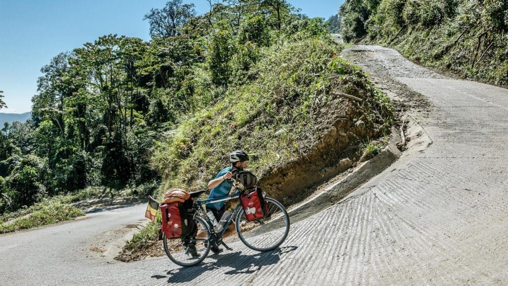 Zoë: ‘We reisden voortdurend met open blik, zonder verwachtingen. We bekeken onze etappes dag per dag. Als je op voorhand alles vastzet, zoals je slaapplaats of bepaalde bestemmingen, creëer je verwachtingen en dat wilden we net niet. Die vrijheid was heel relaxed. Je hoeft niet zoveel kilometers per dag te fietsen om precies op die plek uit te komen. Je hoeft niet eens op de fiets. Je laat de weg voor jou beslissen. Als iets niet lukte, was dat geen probleem want je verwachtte het toch niet.’ Olivier: ‘De afspraak was: zo lang we kunnen en het leuk blijft, gaan we door. Daarom hielden we gewoon een richting aan, en we zagen wel waar we uitkwamen. We hadden een budget van 30 euro per dag, voor ons samen. Daar zouden we dan zo’n 2 à 3 jaar mee kunnen reizen. Nooit gedacht dat het er uiteindelijk vier zouden zijn.’ ‘Voor het vertrek moesten we wat regelen in verband met onze woning: de huur, de verzekeringen, de abonnementen die we moesten opzeggen. Maar eens we vertrokken, viel het papierwerk goed mee. Voor Aziatische landen heb je een visum nodig, dat vergt dus meer voorbereiding. Maar Zuid-Amerika kan je gewoon binnen met je paspoort. Ook in Afrika ging het vlot. Alleen aan de grens van de Verenigde Staten moesten we even langs de ambassade voor een interview.’