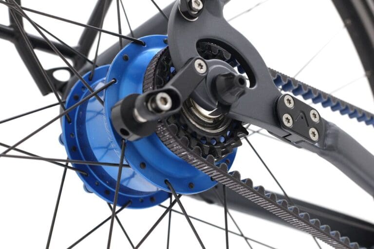 Met de juiste riem en tandwielen is de aandrijving van je fiets super duurzaam. De Trekking Lite heeft deze duurzame Santos riemaandrijving. Dat betekent vaste achterpadden (zodat je achterwiel altijd recht staat) en Gates riemaandrijving. Zo kun je véél en geruisloos fietsen. Wel zo fijn.