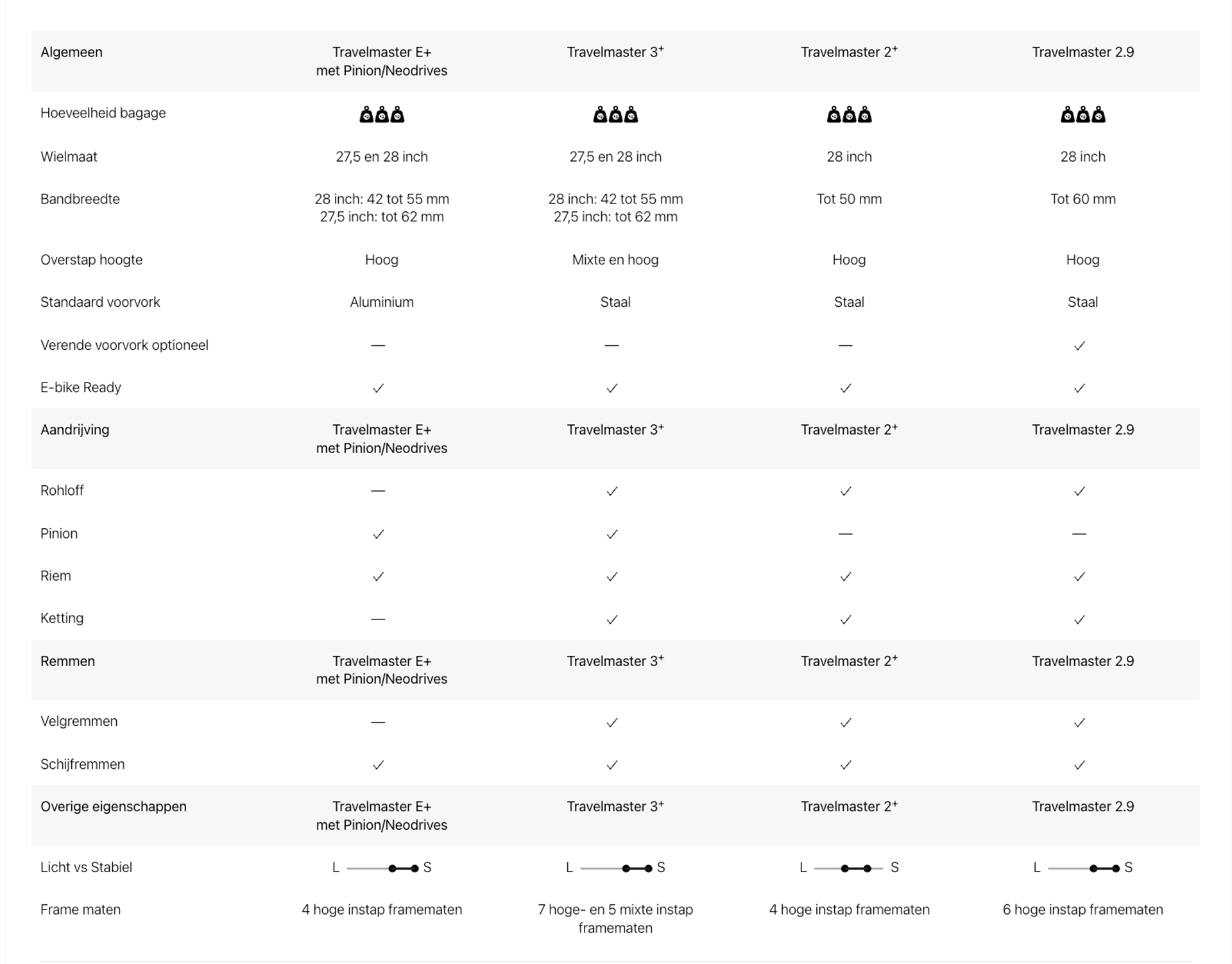 Met een Travel fiets kun je de hele wereld aan. Ze zijn oersterk, superstabiel en bij uitstek geschikt voor heel veel zorgeloze kilometers. Ook met volle bepakking.