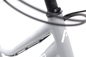 Het frame is clean en dedicated. Dat betekent gladde lasnaden, een mooi, intern balhoofd en een fraaie wishbone achtervork. Geen overbodige nokjes. Wél ruimte voor brede banden met veel bandvrijheid.